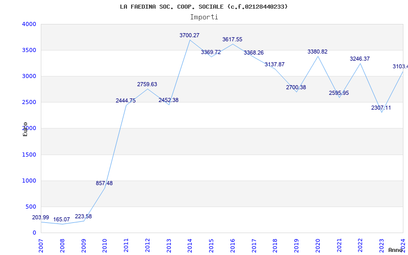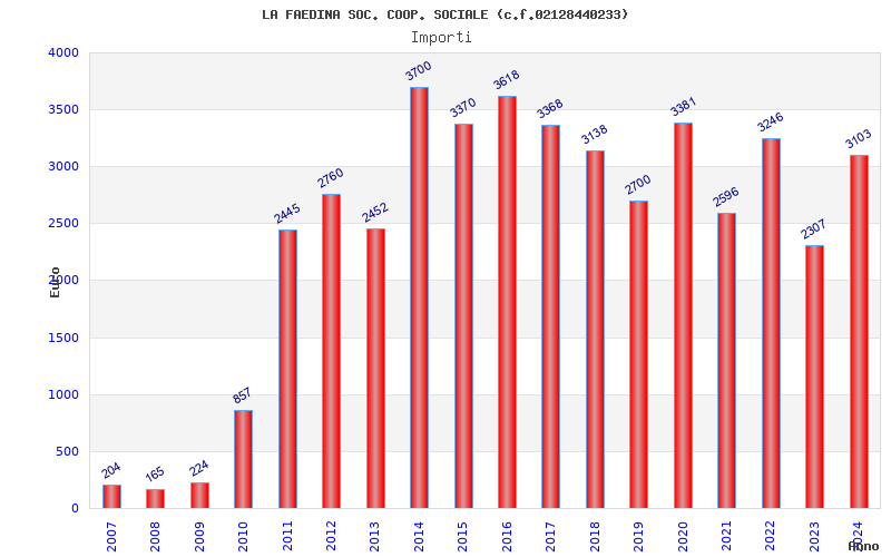 | Anno | Firme | Importi | Media | Naz. | Reg. | Prov. | Comu. |
