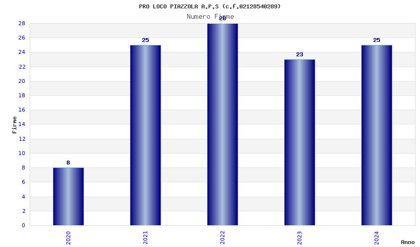 | Anno | Firme | Importi | Media | Naz. | Reg. | Prov. | Comu. |