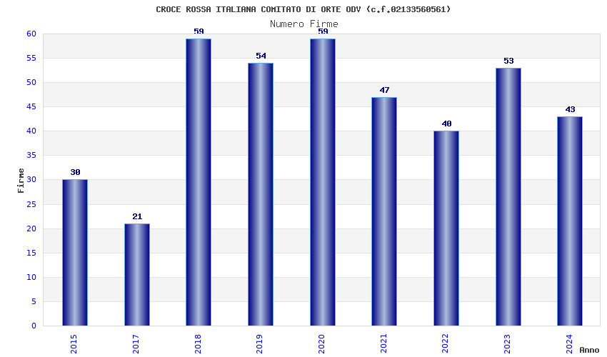 | Anno | Firme | Importi | Media | Naz. | Reg. | Prov. | Comu. |