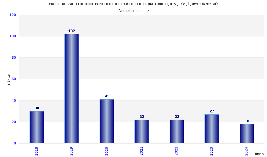| Anno | Firme | Importi | Media | Naz. | Reg. | Prov. | Comu. |