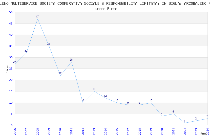 | Anno | Firme | Importi | Media | Naz. | Reg. | Prov. | Comu. |