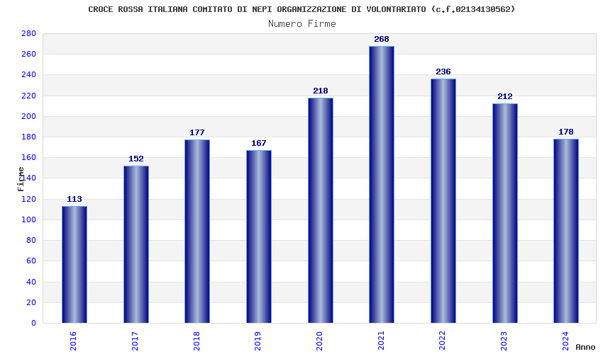 | Anno | Firme | Importi | Media | Naz. | Reg. | Prov. | Comu. |