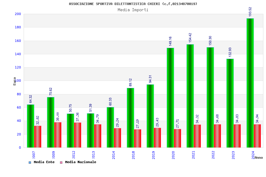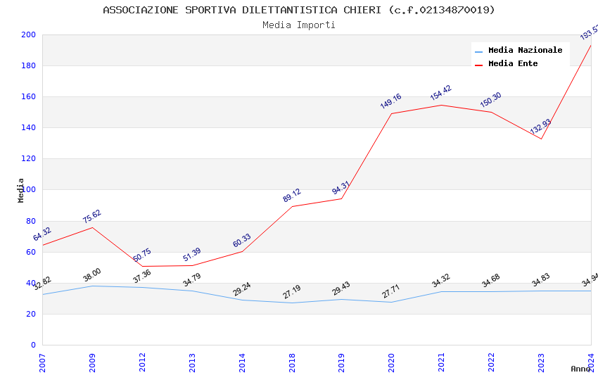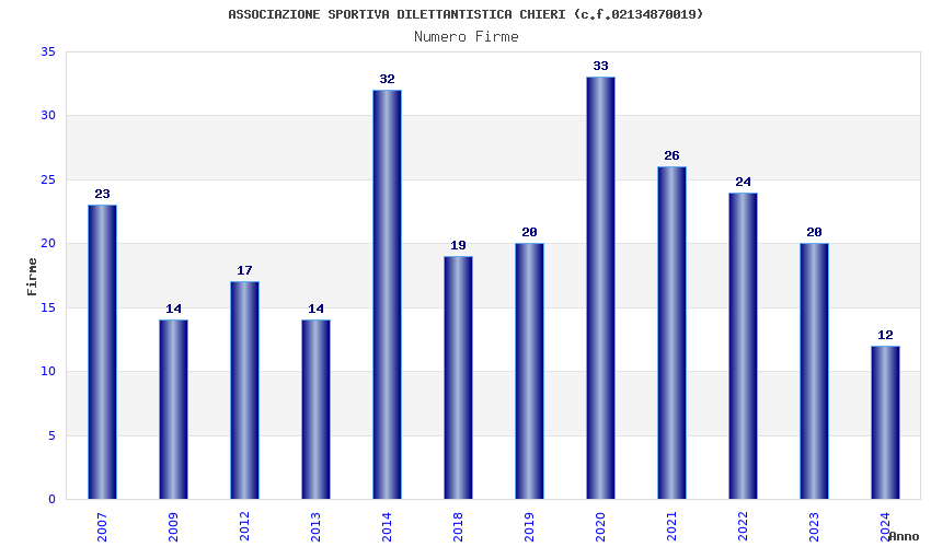 | Anno | Firme | Importi | Media | Naz. | Reg. | Prov. | Comu. |
