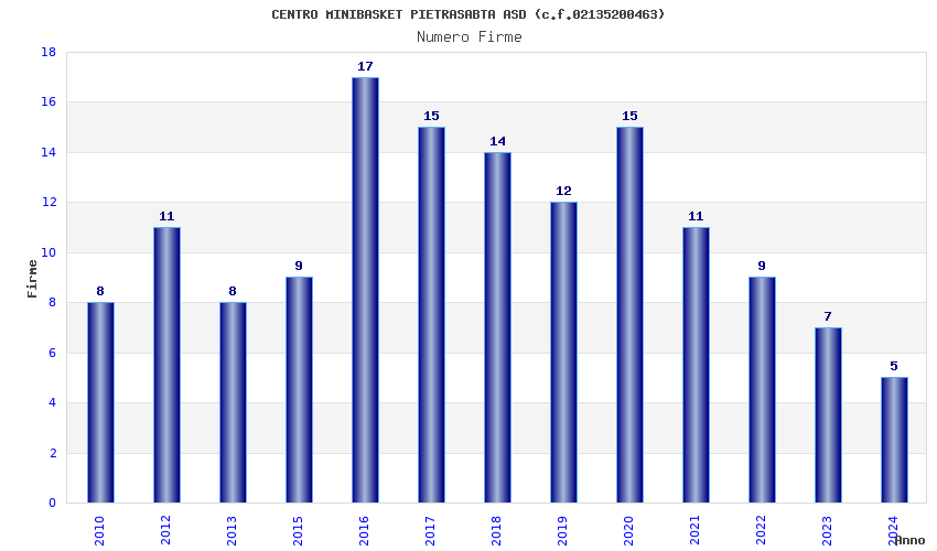 | 2017 | 15 | 277,78 | 18,52 | 49.930 | 3.229 | 339 | 16 |