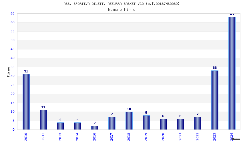 | Anno | Firme | Importi | Media | Naz. | Reg. | Prov. | Comu. |
