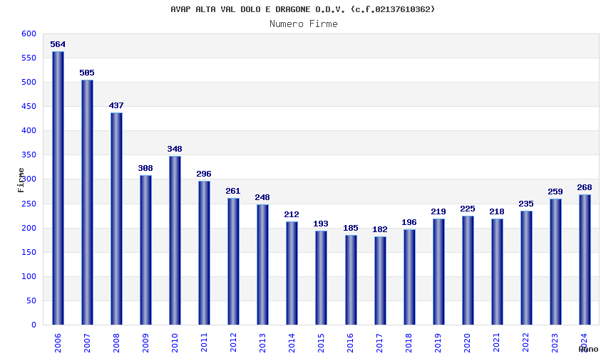 | 2024 | 268 | 5.784,46 | 21,58 | 9.182 | 798 | 131 | 2 |