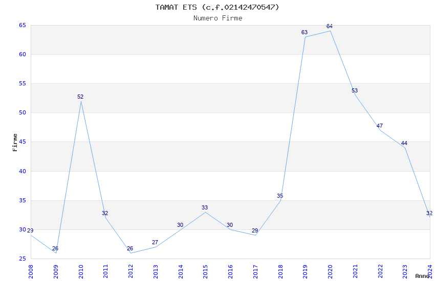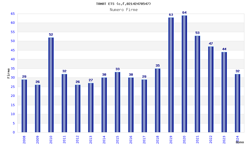 | 2020 | 64 | 3.083,00 | 48,17 | 17.582 | 239 | 192 | 69 |