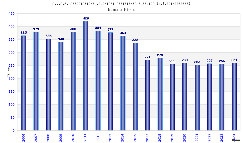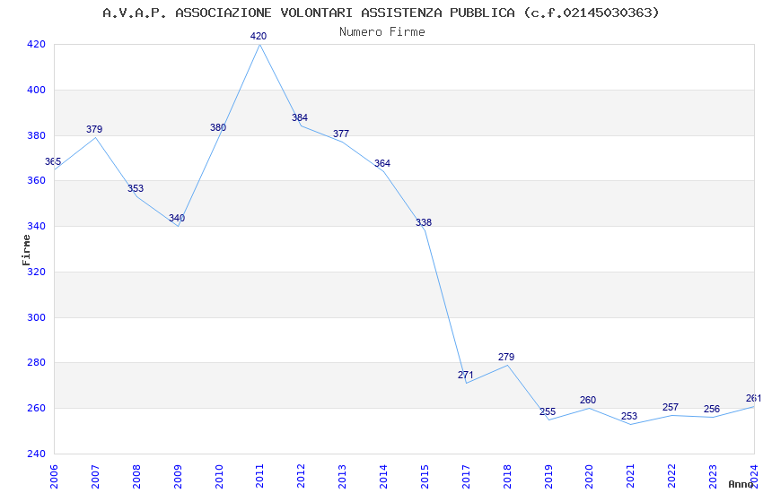 | 2024 | 261 | 6.565,14 | 25,15 | 8.040 | 717 | 118 | 1 |