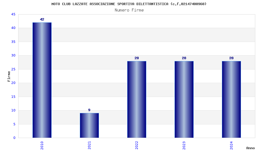| Anno | Firme | Importi | Media | Naz. | Reg. | Prov. | Comu. |
