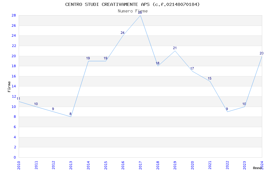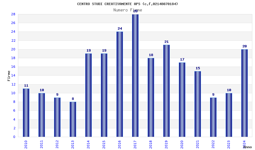 | Anno | Firme | Importi | Media | Naz. | Reg. | Prov. | Comu. |