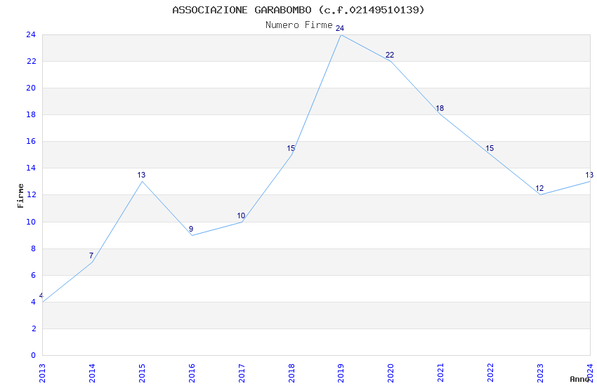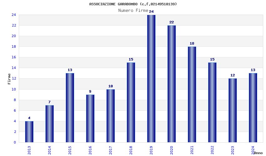 | Anno | Firme | Importi | Media | Naz. | Reg. | Prov. | Comu. |