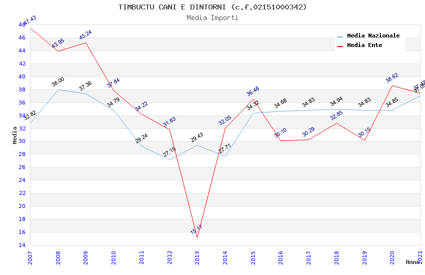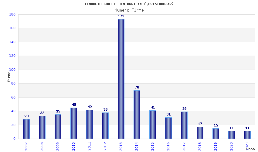| Anno | Firme | Importi | Media | Naz. | Reg. | Prov. | Comu. |