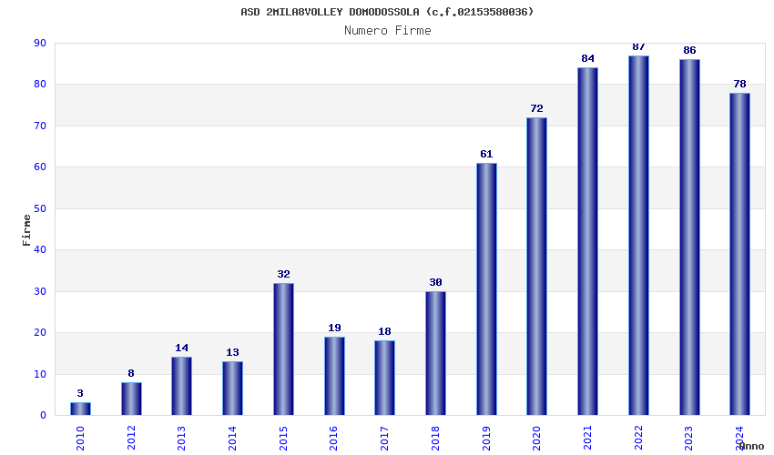 | 2023 | 86 | 2.732,17 | 31,77 | 18.675 | 1.340 | 48 | 2 |