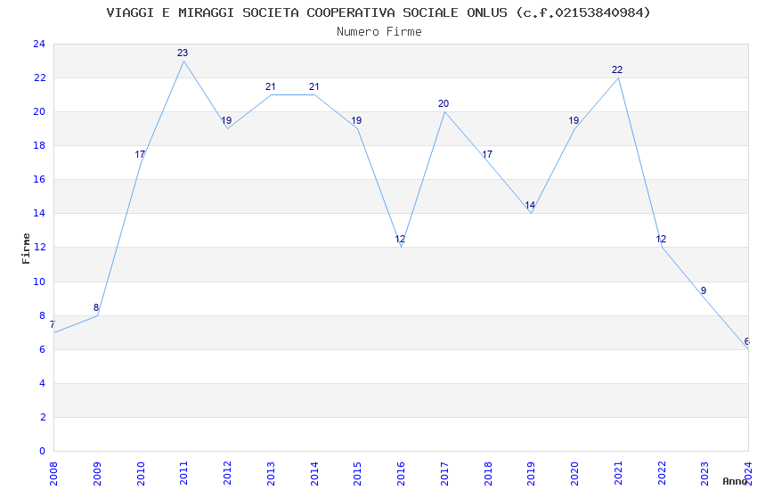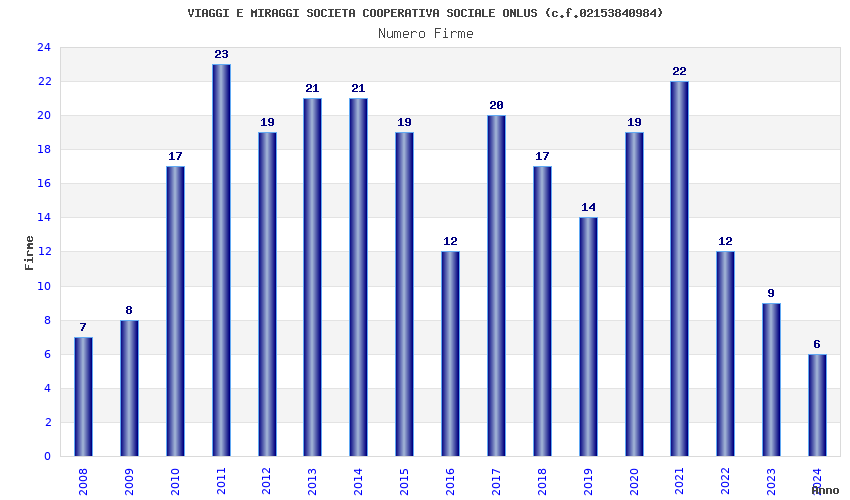 | Anno | Firme | Importi | Media | Naz. | Reg. | Prov. | Comu. |