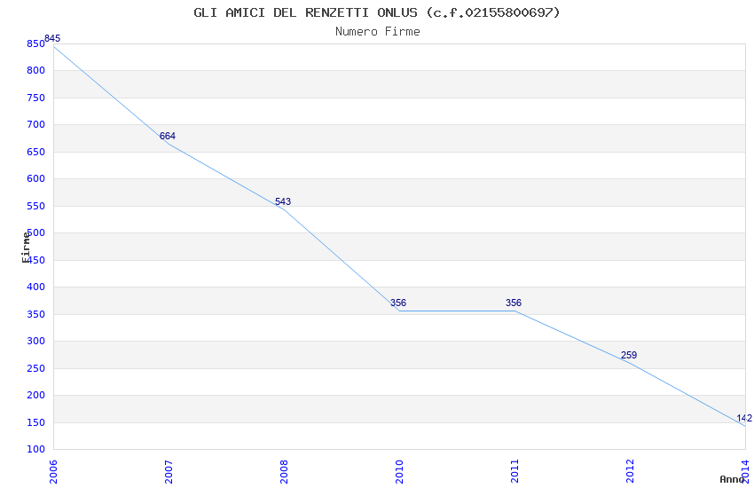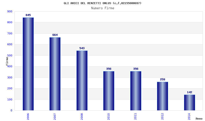 | Anno | Firme | Importi | Media | Naz. | Reg. | Prov. | Comu. |
