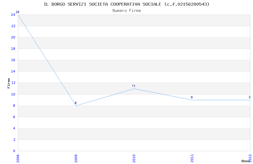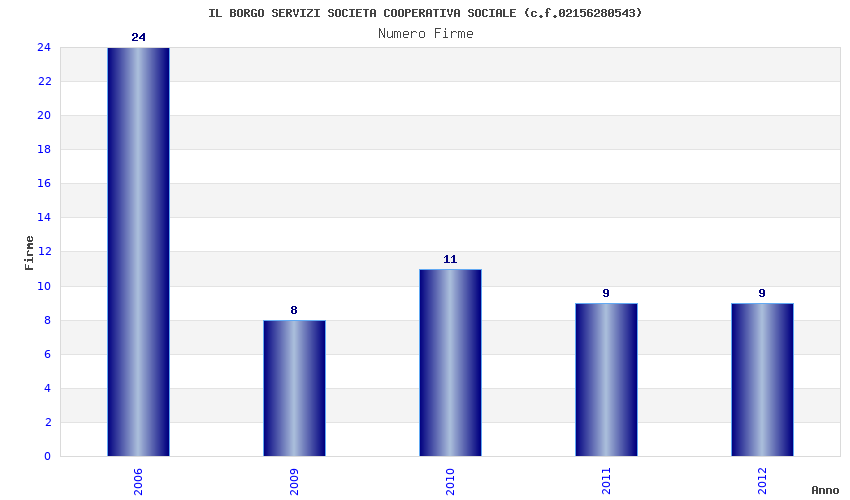 | Anno | Firme | Importi | Media | Naz. | Reg. | Prov. | Comu. |