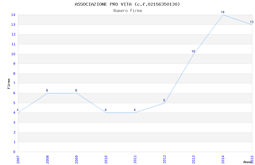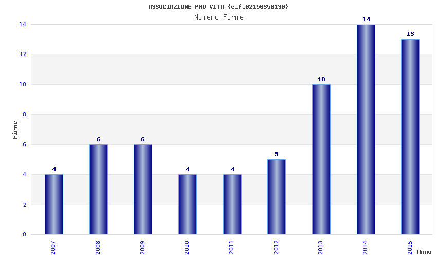 | Anno | Firme | Importi | Media | Naz. | Reg. | Prov. | Comu. |