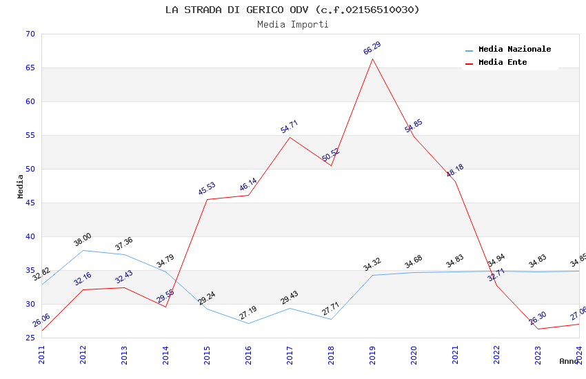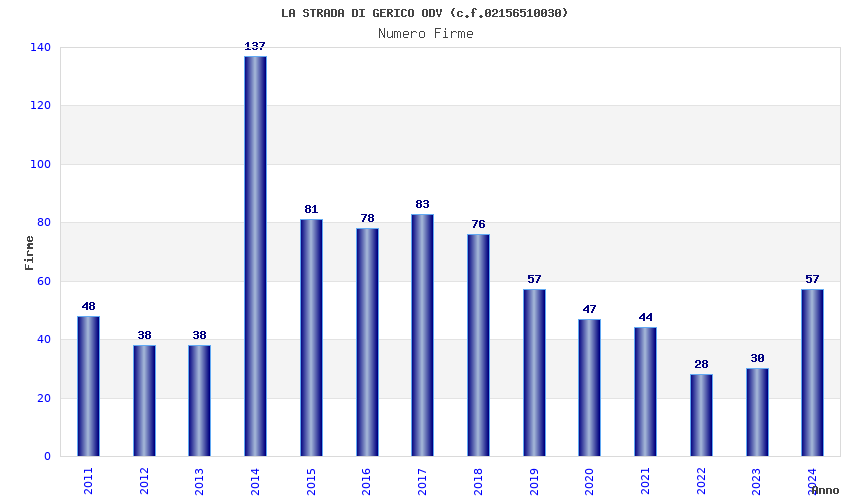 | Anno | Firme | Importi | Media | Naz. | Reg. | Prov. | Comu. |