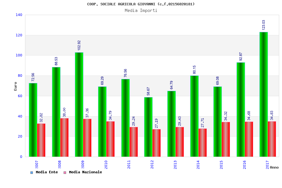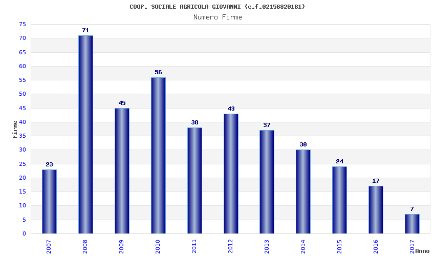 | Anno | Firme | Importi | Media | Naz. | Reg. | Prov. | Comu. |