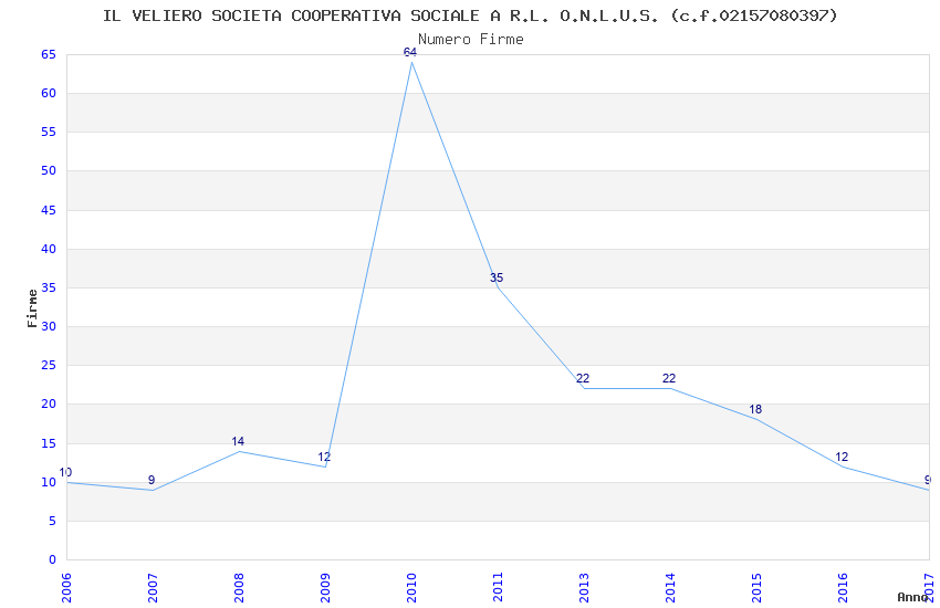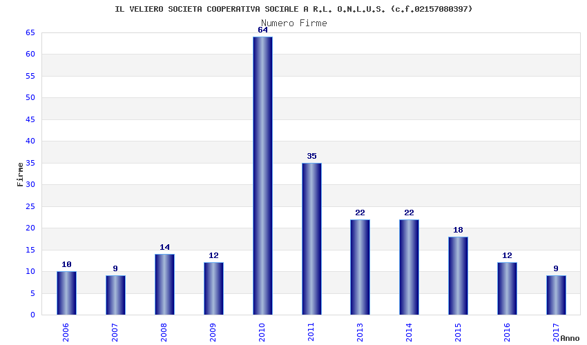 | Anno | Firme | Importi | Media | Naz. | Reg. | Prov. | Comu. |
