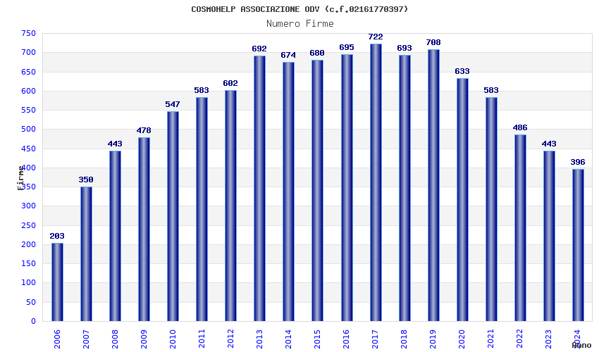 | Anno | Firme | Importi | Media | Naz. | Reg. | Prov. | Comu. |