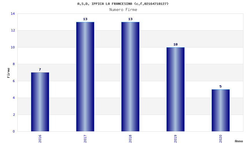 | Anno | Firme | Importi | Media | Naz. | Reg. | Prov. | Comu. |