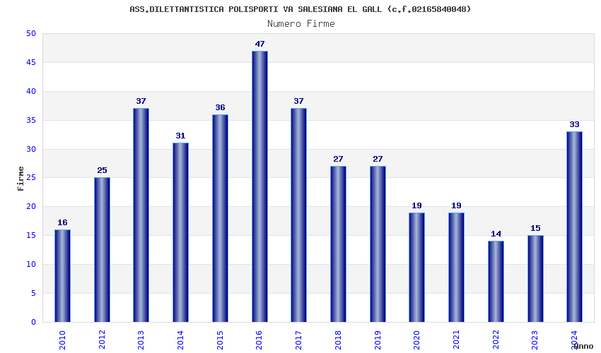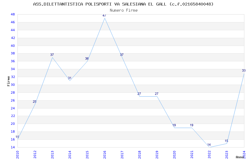 | 2016 | 47 | 1.796,71 | 38,23 | 24.304 | 1.970 | 327 | 1 |