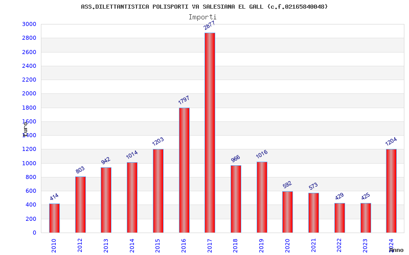 | Anno | Firme | Importi | Media | Naz. | Reg. | Prov. | Comu. |