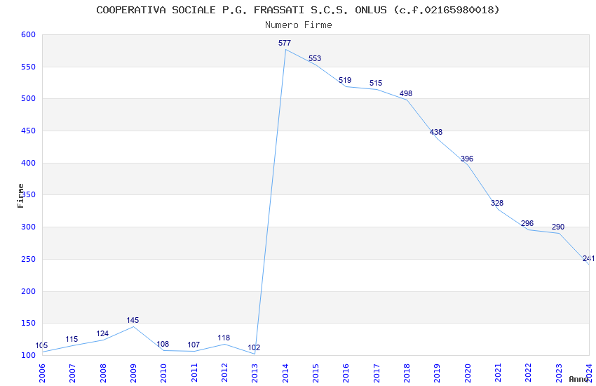 | 2014 | 577 | 15.562,39 | 26,97 | 3.100 | 214 | 132 | 96 |