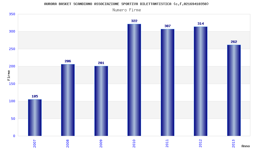 | Anno | Firme | Importi | Media | Naz. | Reg. | Prov. | Comu. |