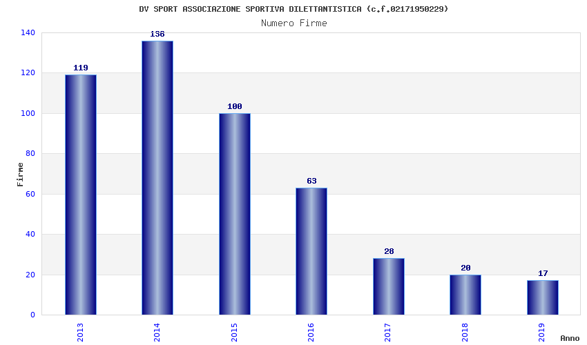 | Anno | Firme | Importi | Media | Naz. | Reg. | Prov. | Comu. |