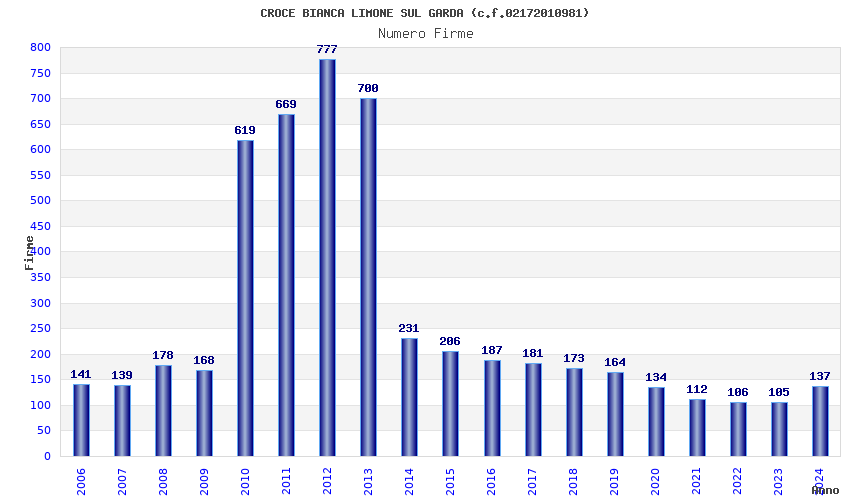 | 2013 | 700 | 10.609,21 | 15,16 | 3.783 | 918 | 80 | 1 |