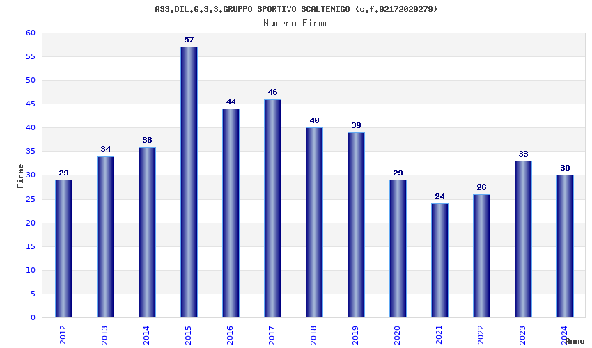 | Anno | Firme | Importi | Media | Naz. | Reg. | Prov. | Comu. |