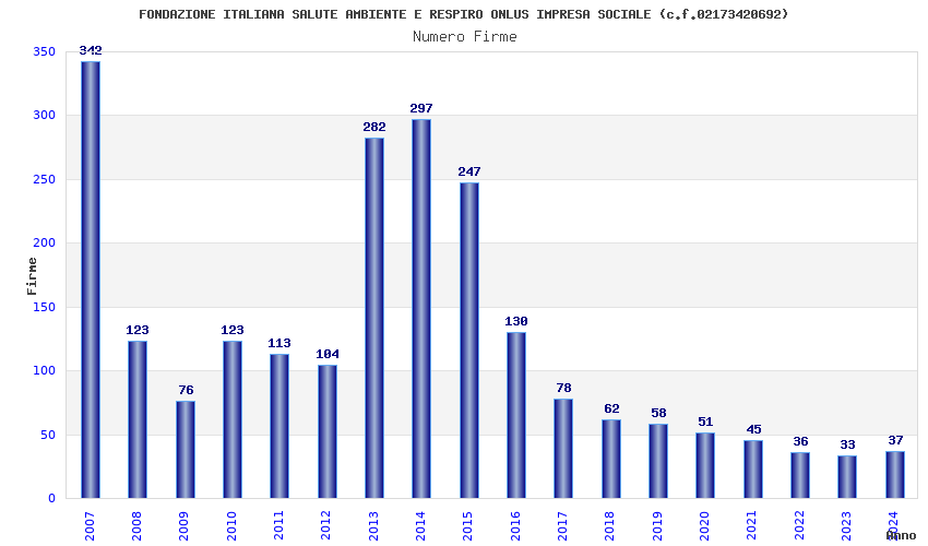 | Anno | Firme | Importi | Media | Naz. | Reg. | Prov. | Comu. |