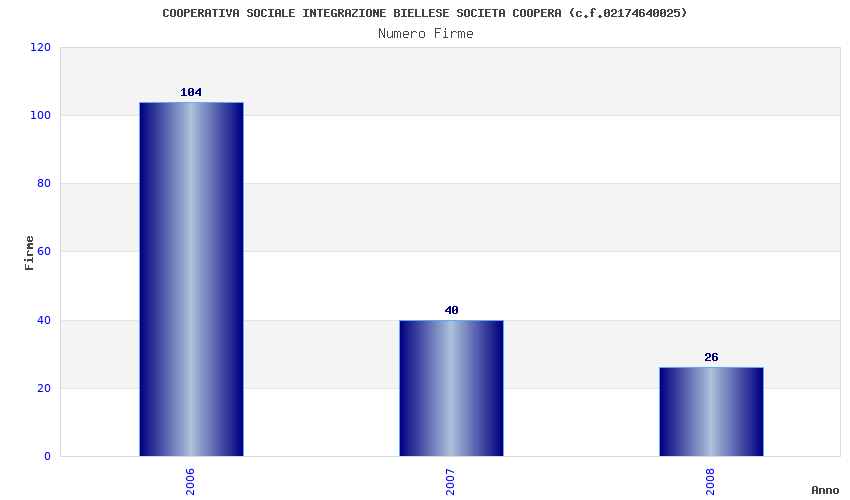 | Anno | Firme | Importi | Media | Naz. | Reg. | Prov. | Comu. |