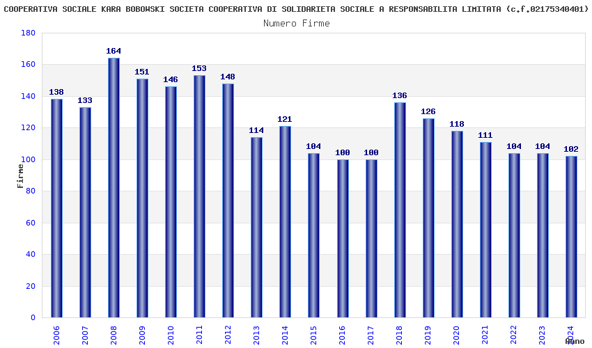 | Anno | Firme | Importi | Media | Naz. | Reg. | Prov. | Comu. |