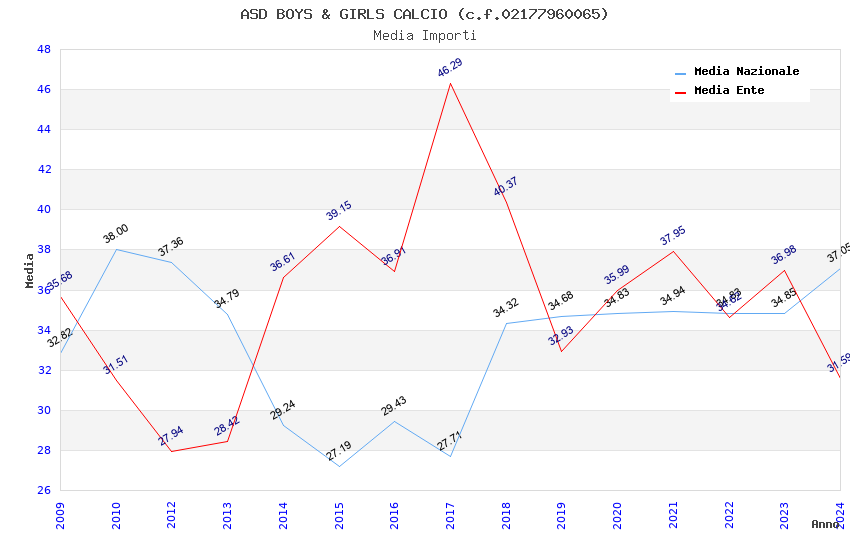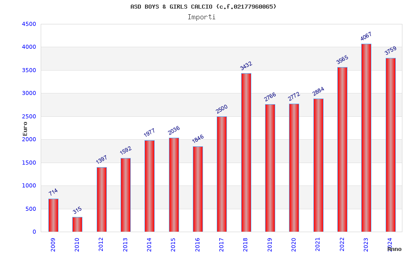 | Anno | Firme | Importi | Media | Naz. | Reg. | Prov. | Comu. |