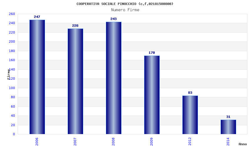 | Anno | Firme | Importi | Media | Naz. | Reg. | Prov. | Comu. |