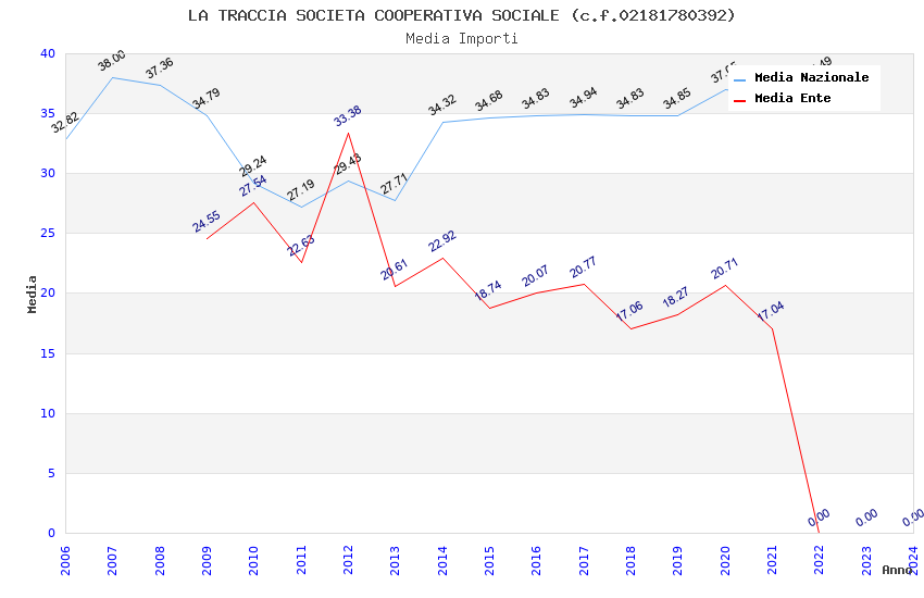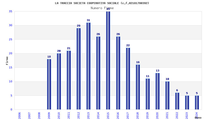 | Anno | Firme | Importi | Media | Naz. | Reg. | Prov. | Comu. |