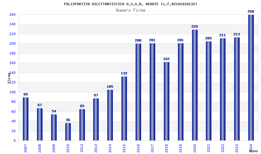 | Anno | Firme | Importi | Media | Naz. | Reg. | Prov. | Comu. |