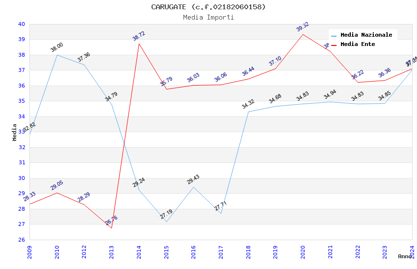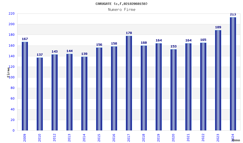 | Anno | Firme | Importi | Media | Naz. | Reg. | Prov. | Comu. |