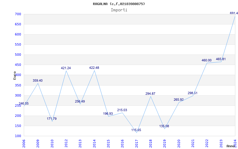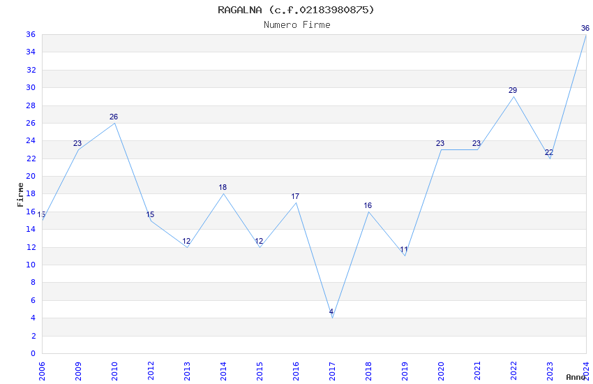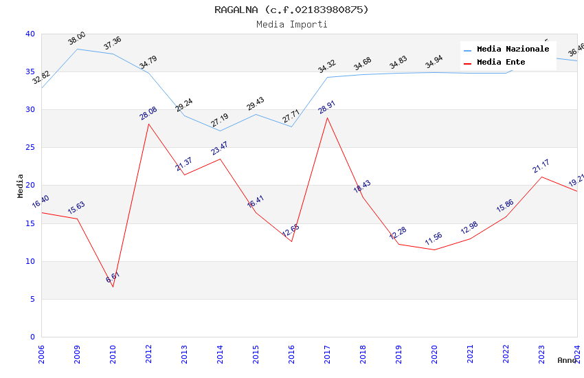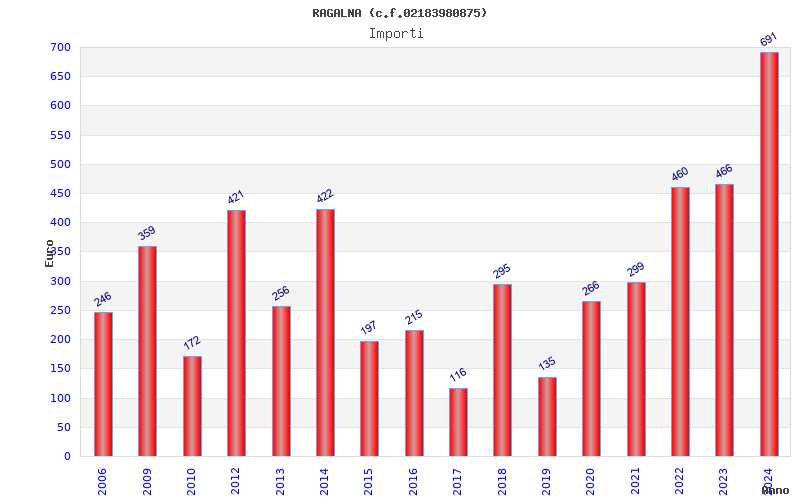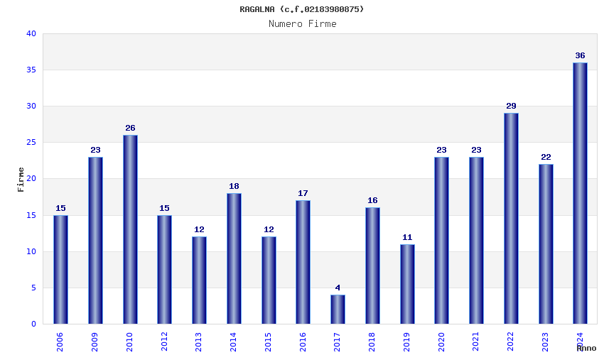 | Anno | Firme | Importi | Media | Naz. | Reg. | Prov. | Comu. |
