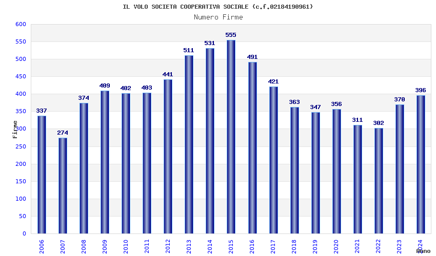 | Anno | Firme | Importi | Media | Naz. | Reg. | Prov. | Comu. |