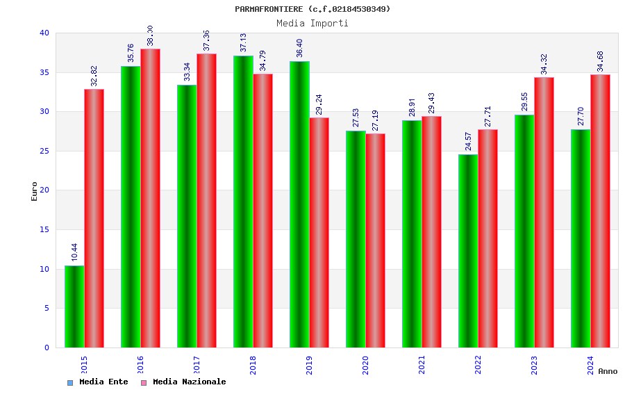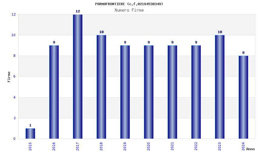 | Anno | Firme | Importi | Media | Naz. | Reg. | Prov. | Comu. |