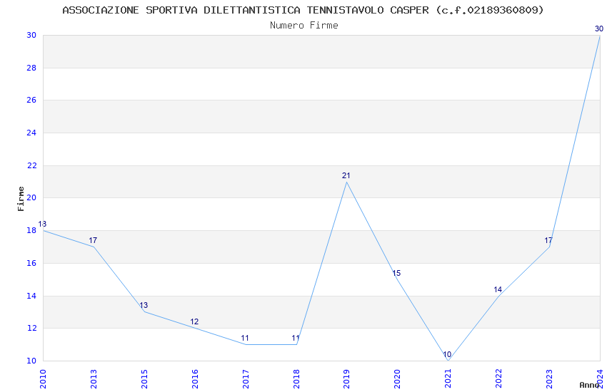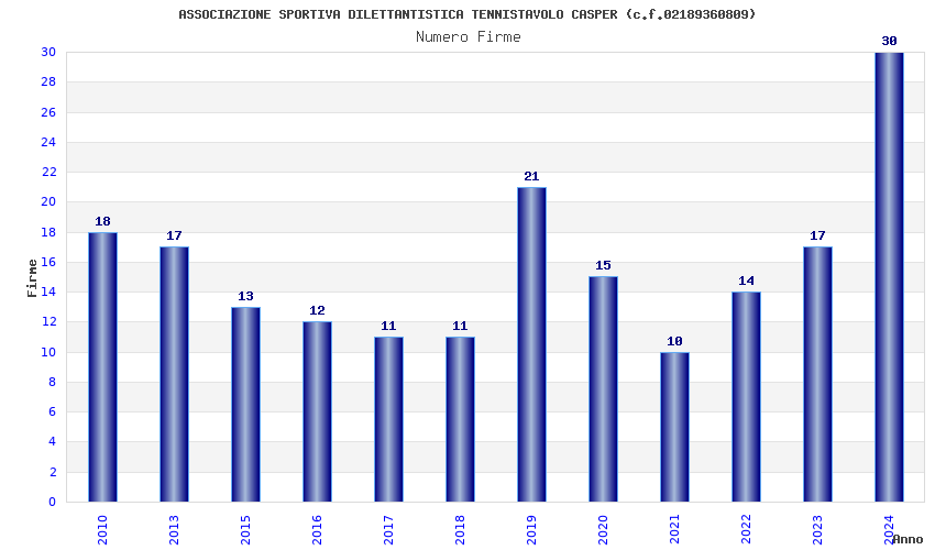 | Anno | Firme | Importi | Media | Naz. | Reg. | Prov. | Comu. |