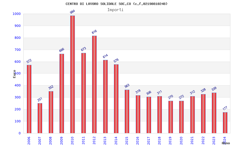 | Anno | Firme | Importi | Media | Naz. | Reg. | Prov. | Comu. |