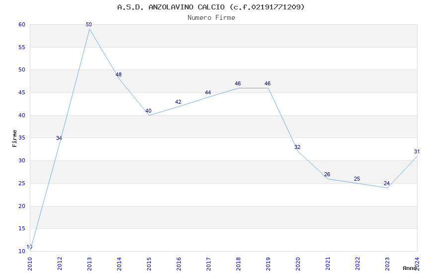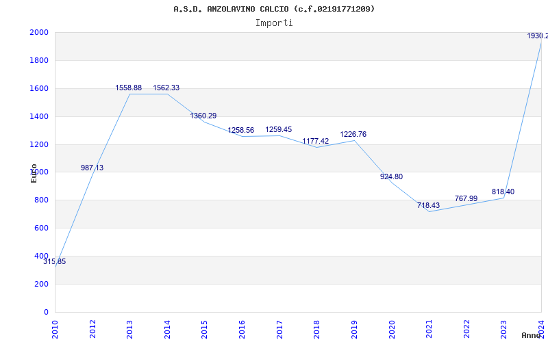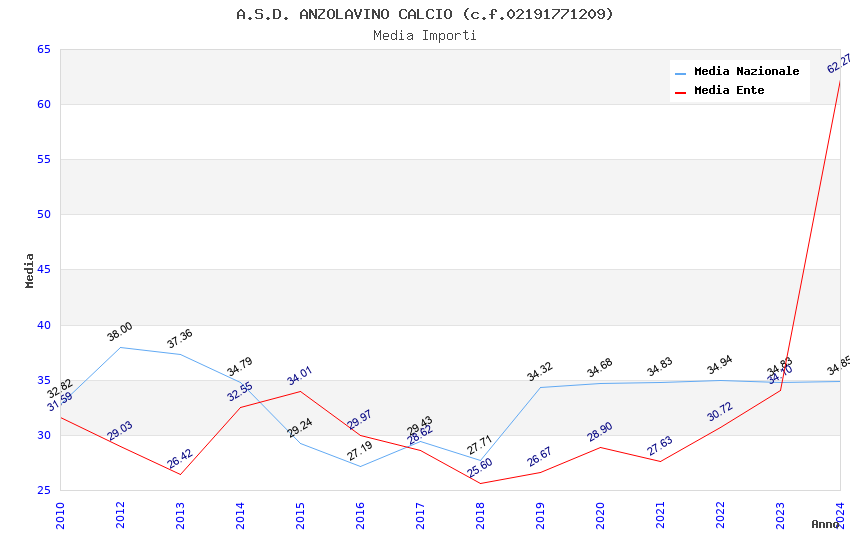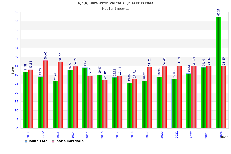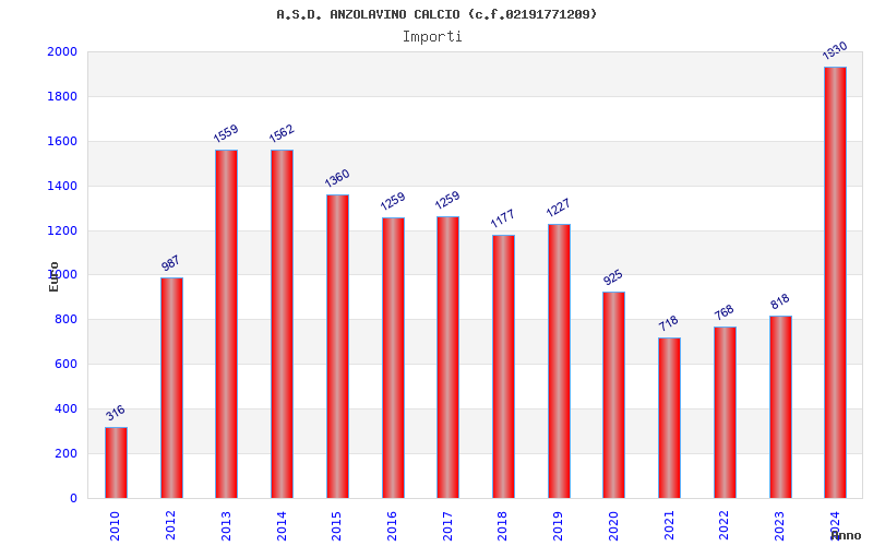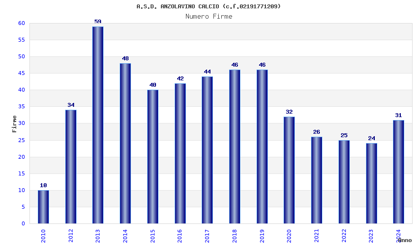 | Anno | Firme | Importi | Media | Naz. | Reg. | Prov. | Comu. |