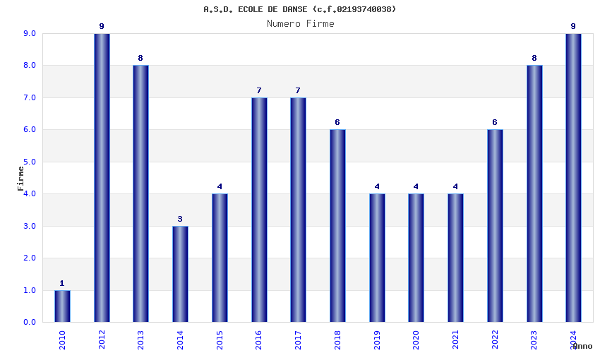 | Anno | Firme | Importi | Media | Naz. | Reg. | Prov. | Comu. |