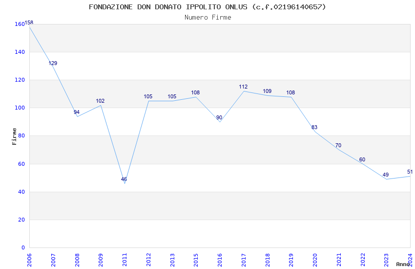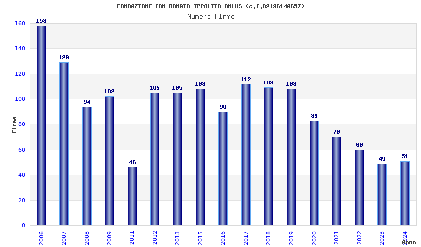 | Anno | Firme | Importi | Media | Naz. | Reg. | Prov. | Comu. |