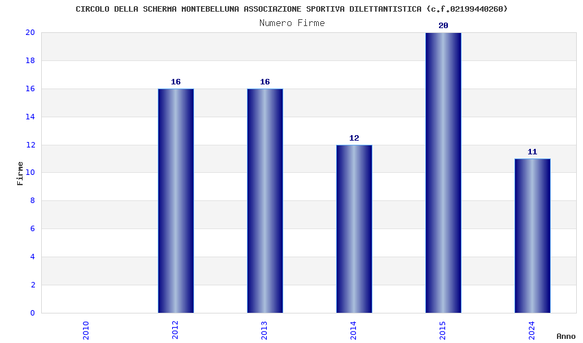 | Anno | Firme | Importi | Media | Naz. | Reg. | Prov. | Comu. |
